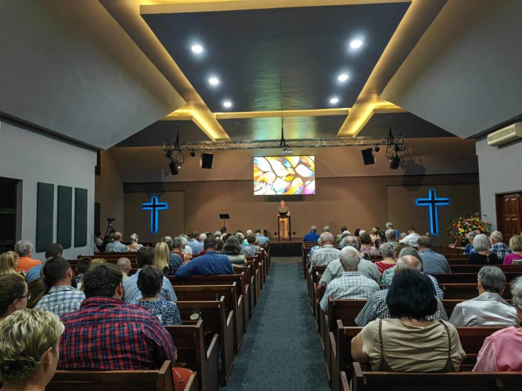 Byeenkomste is op 17 Maart 2024 in die nuwe ouditorium hervat.
